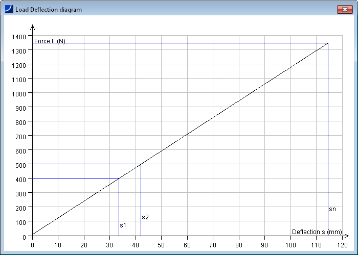 最重要的计算结果如静态的和动态的许用应力的利用率,弹簧工作行程以及许用弹簧压缩量的利用率等显示在结果报告窗口。另外,还显示和Goodman-曲线图,负载-压缩量图。图形可以通过鼠标点击放大显示。
