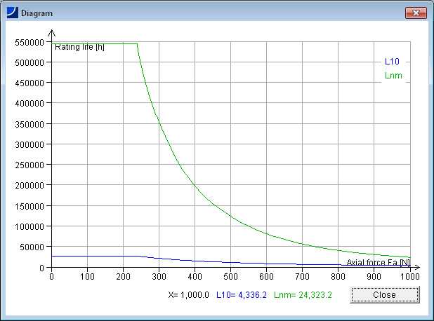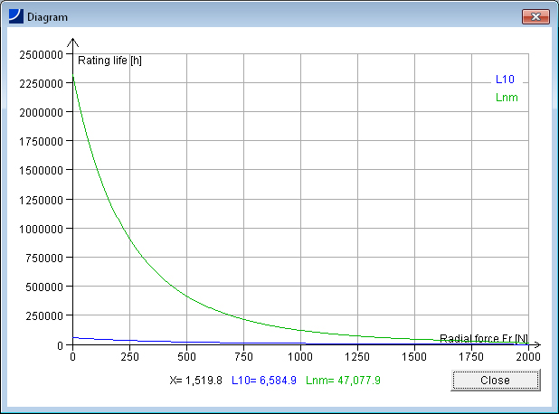 计算结果显示基本额定寿命、扩展寿命以及静强度校核参数。另外还有各种图表来显示计算结果: