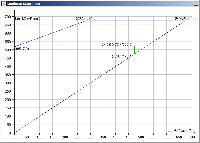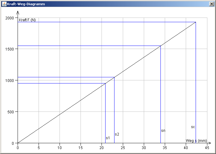 Die wichtigsten Ergebnisse, d.h. die statische und dynamische Ausnutzung der zulässigen Spannung, der Federhub und die Ausnutzung des zulässigen Federweges werden bereits während der Eingabe übersichtlich angezeigt. Zusätzlich erfolgt die Darstellung des Goodman- und des Kraft-Weg-Diagramms. Die Diagramme lassen sich per Mausklick vergrößert darstellen.