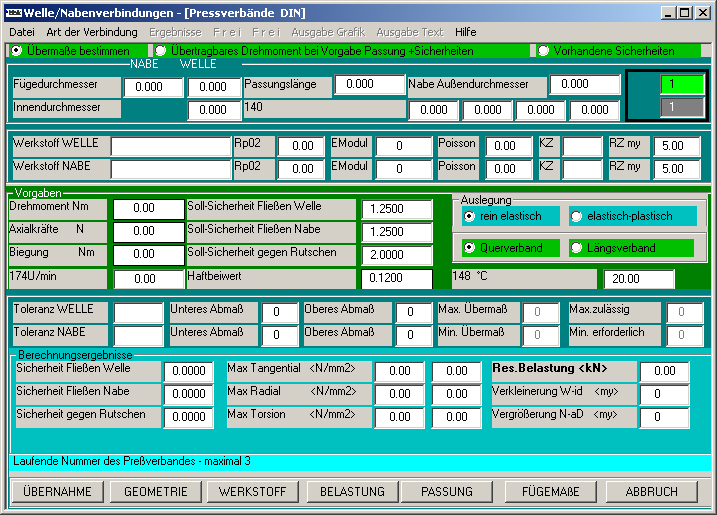 Cylindrical interference fits according to DIN 7190 (elastic and elastic-plastic range)
