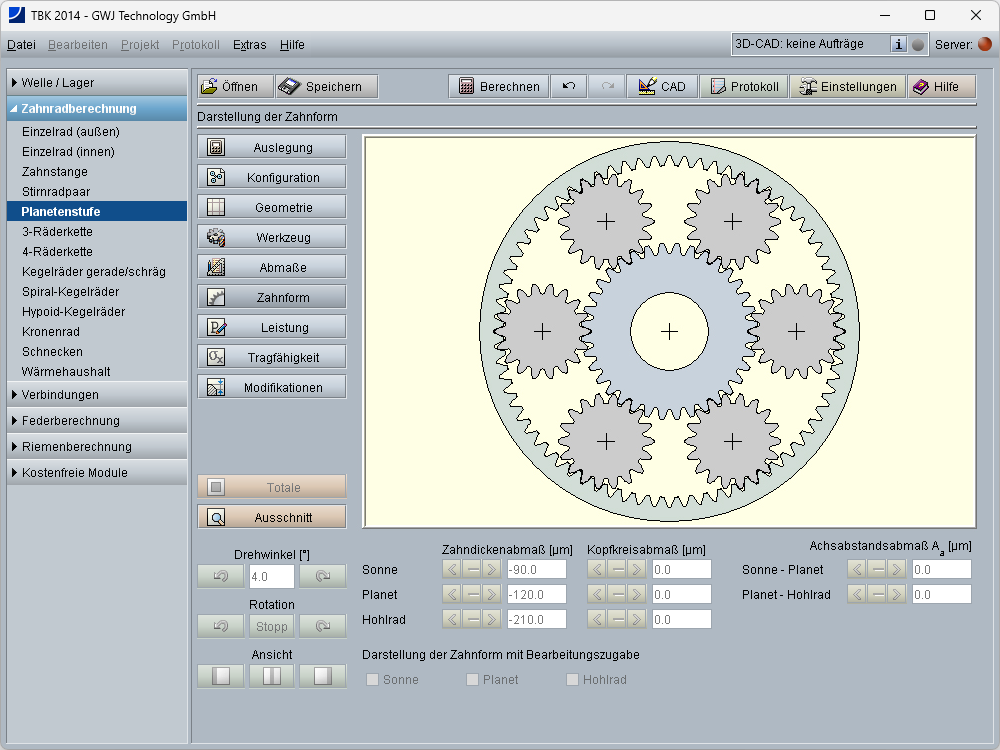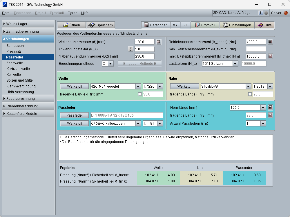 Mit dem TBK sind Module z.B. für Wellen und Lager, Passfeder- und Pressverbindungen, Zahnwellen (DIN 5480 etc., ISO, ANSI, ...), Keilwellen- und Kerbzahnverbindungen, Bolzen & Stifte, Klemmverbindungen, Schrauben, Zahnriemen, Federn, Stirnräder, Planetenstufen, Kegelräder, ... uvm. verfügbar. Der Berechnungskern ist umfangreich getestet und bereits seit vielen Jahren in der Praxis bewährt und verifiziert.