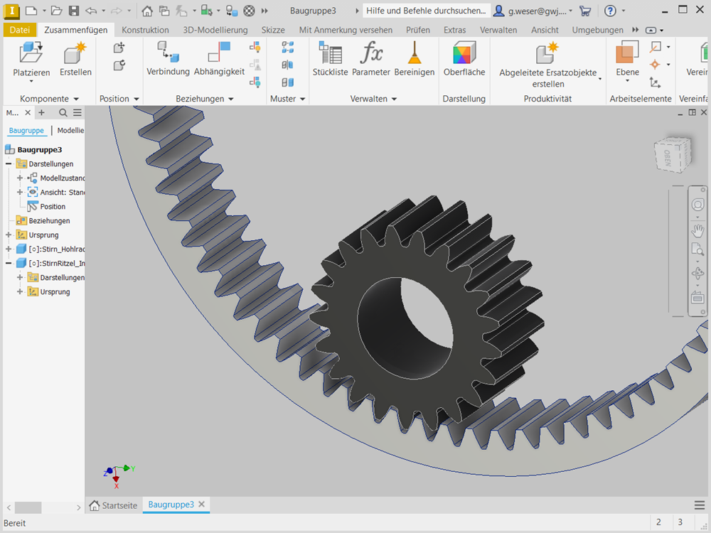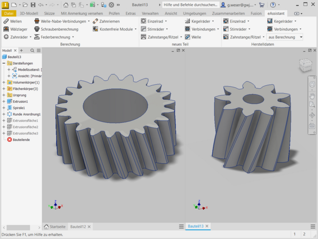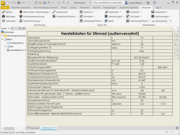 - Auf Basis der Berechnung können schräg- oder geradverzahnte Stirnräder außen- und innenverzahnt automatisch direkt als 3D Autodesk Inventor-Teil generiert werden.