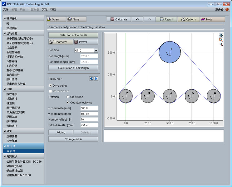 使用同步带传动模块可以图形互动设计和计算整个带传动系统。
