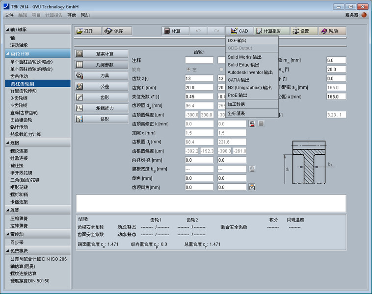 以2D DXF-文件格式输出任意渐开线齿形的精确齿形几何尺寸
