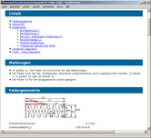 Die Berechnungsdurchführung ist für eine dynamische oder statisch/quasistatische Beanspruchung möglich. Federwerkstoffe können bequem aus der Werkstoffdatenbank ausgewählt oder auch manuell eingegeben werden. Somit wird die Berechnung mit Sonderwerkstoffen ermöglicht. Weiterhin können die Toleranzen für den Drahtdurchmesser gemäß DIN 2076 B und C, DIN 2077 oder individuell vorgegeben werden. Je nach Herstellverfahren des gewählten Werkstoffes, d.h. warmgewalzt oder kaltgeformt, erfolgt die Berechnung der Toleranzen gemäß DIN 2095 oder DIN 2096. Als weiterer Zusatz erfolgt die Berechnung der Eigenfrequenz der Feder. Die Betriebstemperatur kann für die Berechnung ebenfalls berücksichtigt werden.