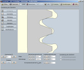 Ein besonderes Highlight des Moduls ist die Darstellung der exakt berechneten Zahnform mit Animation/Simulation des Zahneingriffs. Für diese Darstellung können die kleinsten, mittleren und größten Abmaße für die Zahndicken, die Kopfkreise und den Achsabstand gewählt werden. Weiterhin erhält der Anwender entsprechende Hinweise oder Warnungen, z.B. für möglicherweise auftretende Eingriffsstörungen. Die Prüfung auf Eingriffsstörungen erfolgt permanent im Hintergrund auf Basis der exakten Zahnform.