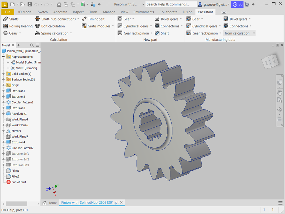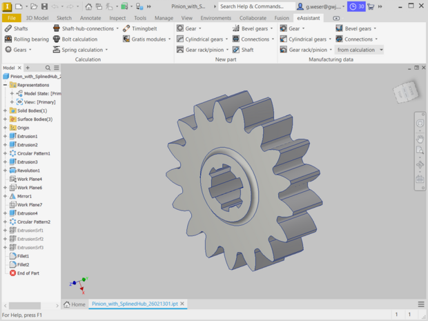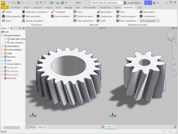 - Based on the calculation, external and internal, spur and helical gears can be generated automatically as a feature-based 3D part in Autodesk Inventor.