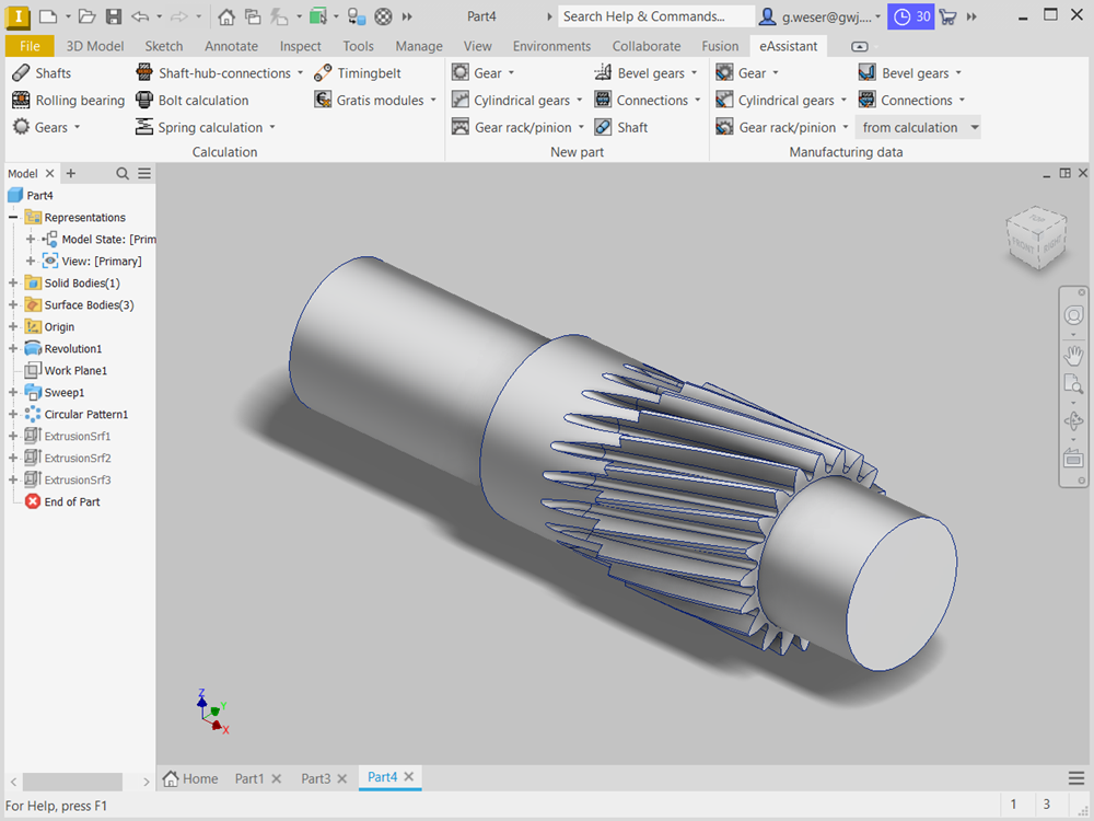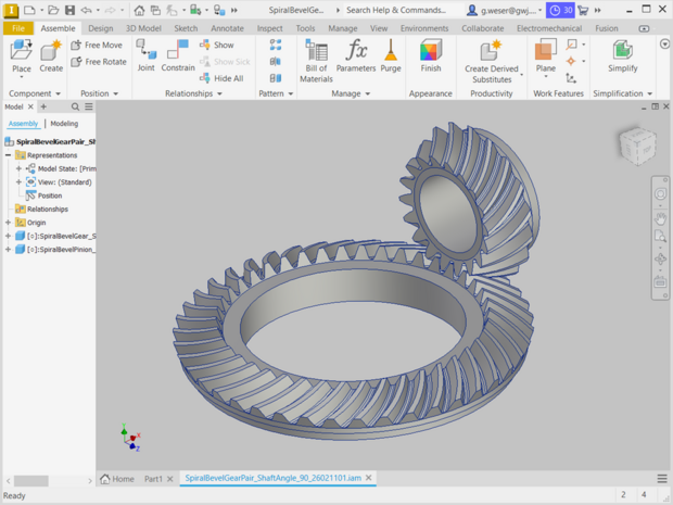 - Based on the calculation, straight, helical and spiral bevel gears can be automatically created as a native 3D part in Autodesk Inventor.