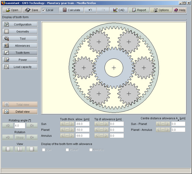 A special highlight of the calculation module is the display of the accurate calculated tooth form with a parallel animation/simulation of the tooth mesh of sun/planet and planet/annulus.