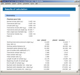 In addition to the geometry calculation, the torques, speeds, relative speed of the planet gear, power, pitch power, coupling power are determined as well. Tangential force of the planet carrier as well as centrifugal force of the planet are calculated.