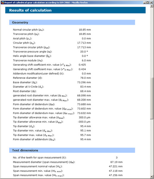 This gear calculation module allows a simple calculation of single external and internal cylindrical gears according to DIN 3960, DIN 3961, DIN 3964, DIN 3967, DIN 3977 and DIN 868. External spur and helical gears as well internal gearings are possible to calculate. Profile shift, addendum chamfer and allowances will be taken into consideration. Gear quality and tooth thickness tolerances can be comfortably selected from listboxes.