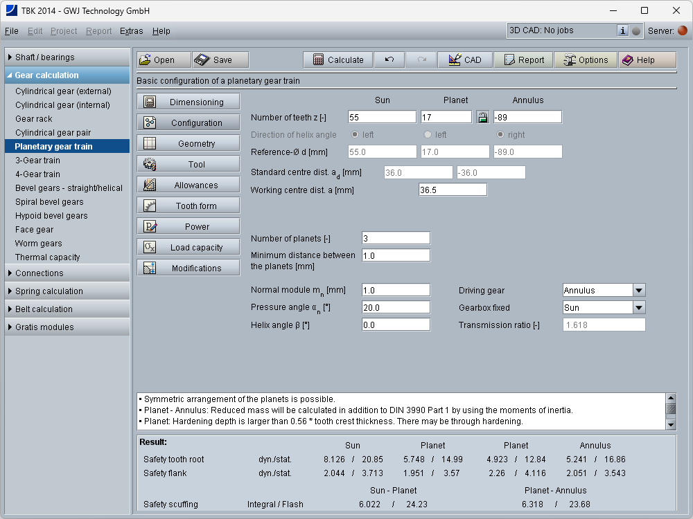 - Easy configuration to find fast solutions to dimension planetary gear trains including display of transmission ratio and standard centre distances