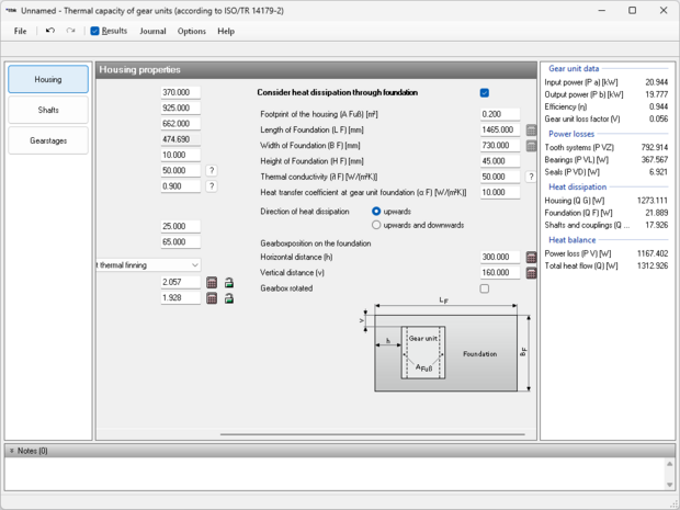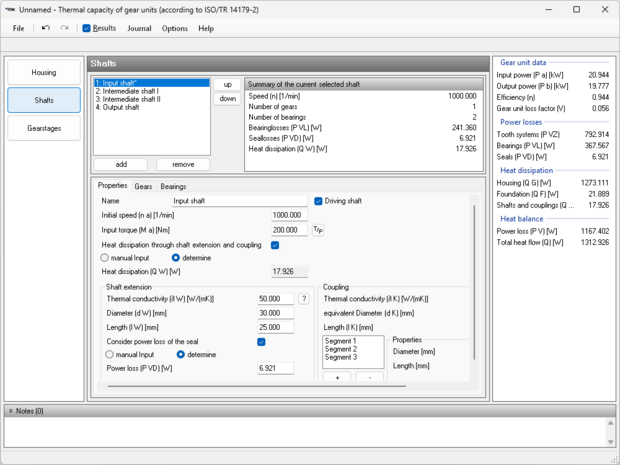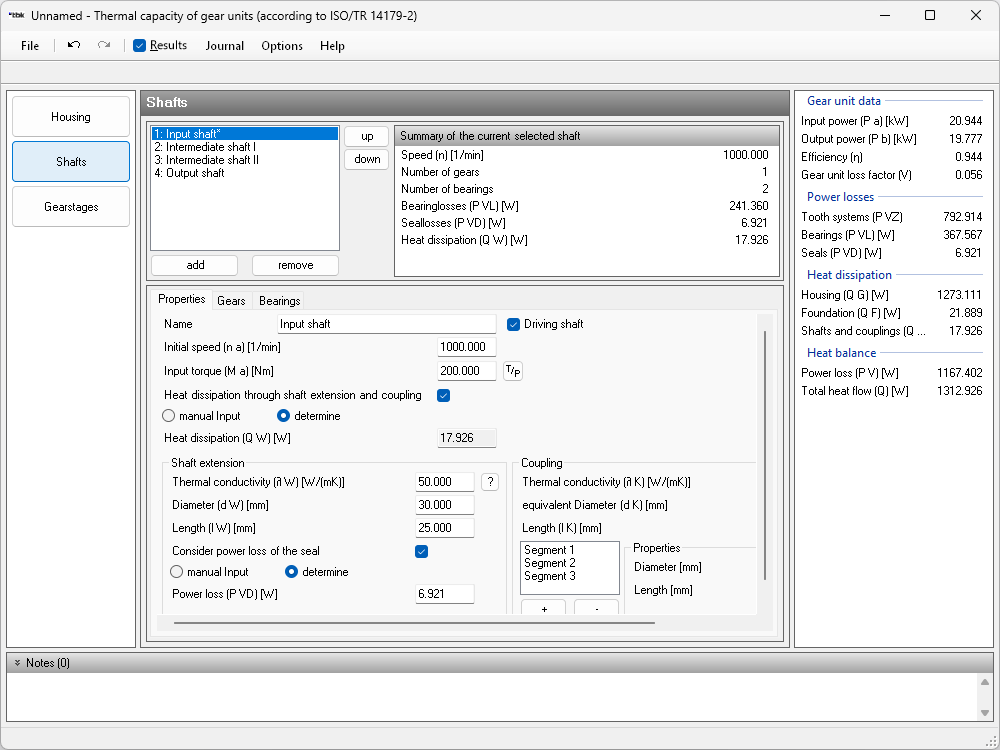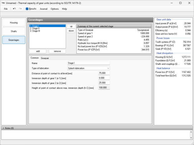 - The results include: gear data, power losses, heat dissipation, and thermal capacity