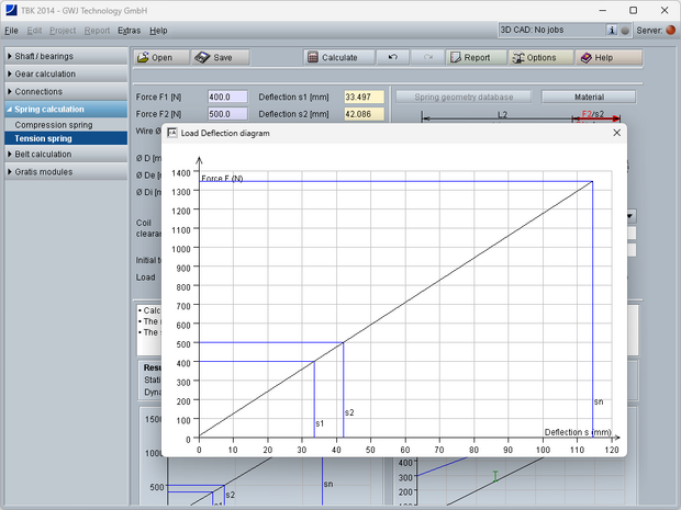 The important results, the static and dynamic utilisation of the permissible stress, the spring deviation and the utilisation of permissible spring deflection are displayed during the input. In addition, the Goodman and Load-deflection diagrams are available. A simple mouse-click allows to enlarge the diagrams.