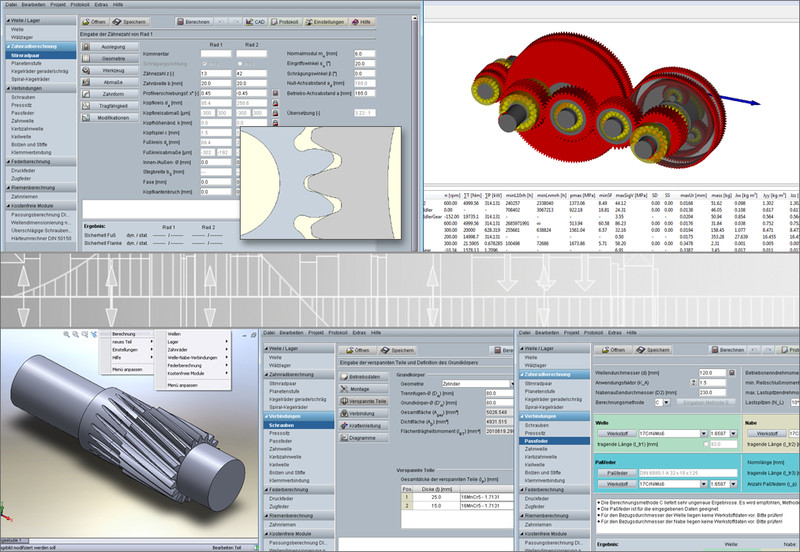 TBK 2014 software can be extended with the „SystemManager“ add-on application. It allows for a fast and easy design of complete systems. By using the add-on, multi-stage cylindrical gears, planetary gear trains and bevel gear drives can be easily determined. Power-distributed transmissions and manual gearboxes with load spectra are supported as well. The calculation of eigenfrequencies of the complete system is also possible.