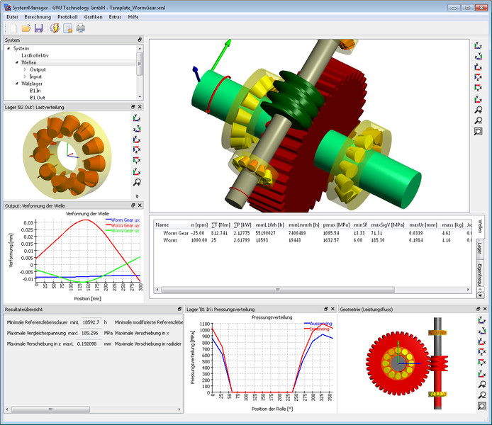 The new version includes bevel gear stages with shaft angle unequal 90°. In addition, new force elements for worms and worm wheels were added and the new calculation module for worms was connected to SystemManager.