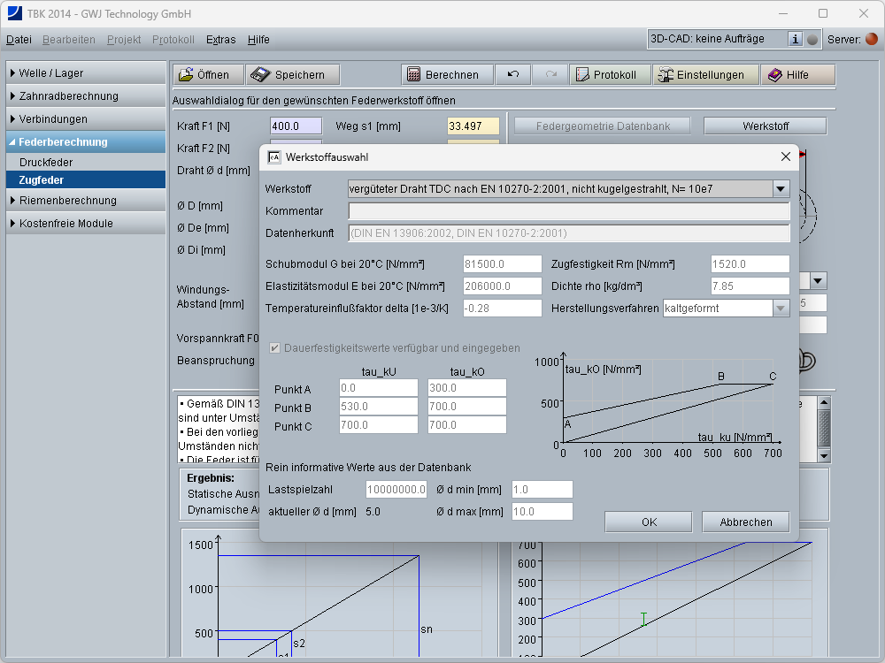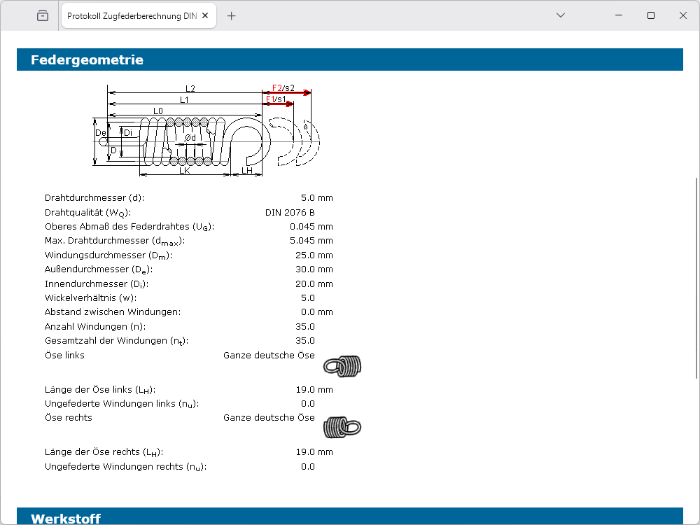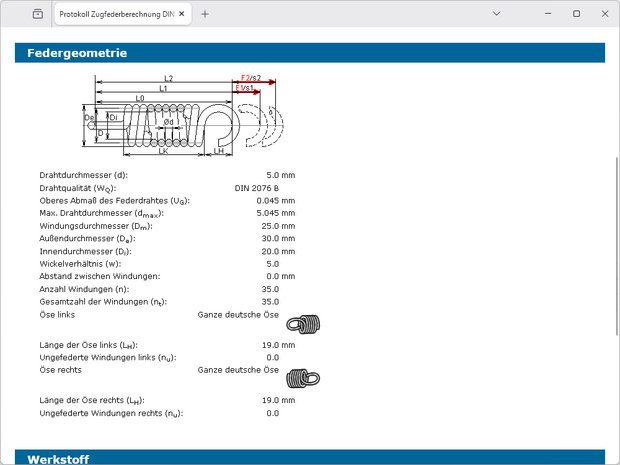 - Federwerkstoffe aus Datenbank wählbar oder individuelle Definition