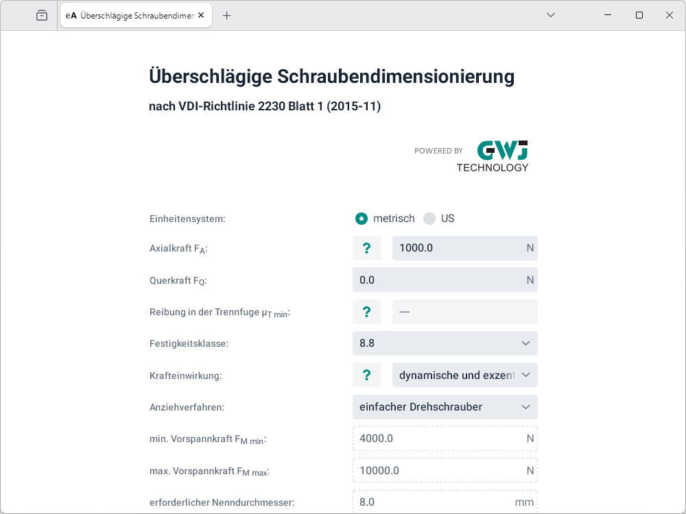 Überschlägige Schraubendimensionierung nach VDI 2230 Blatt 1 (2003-02)