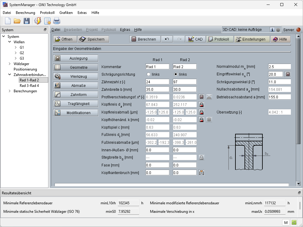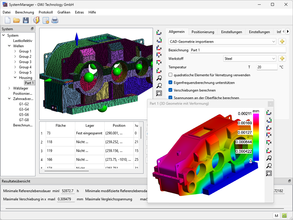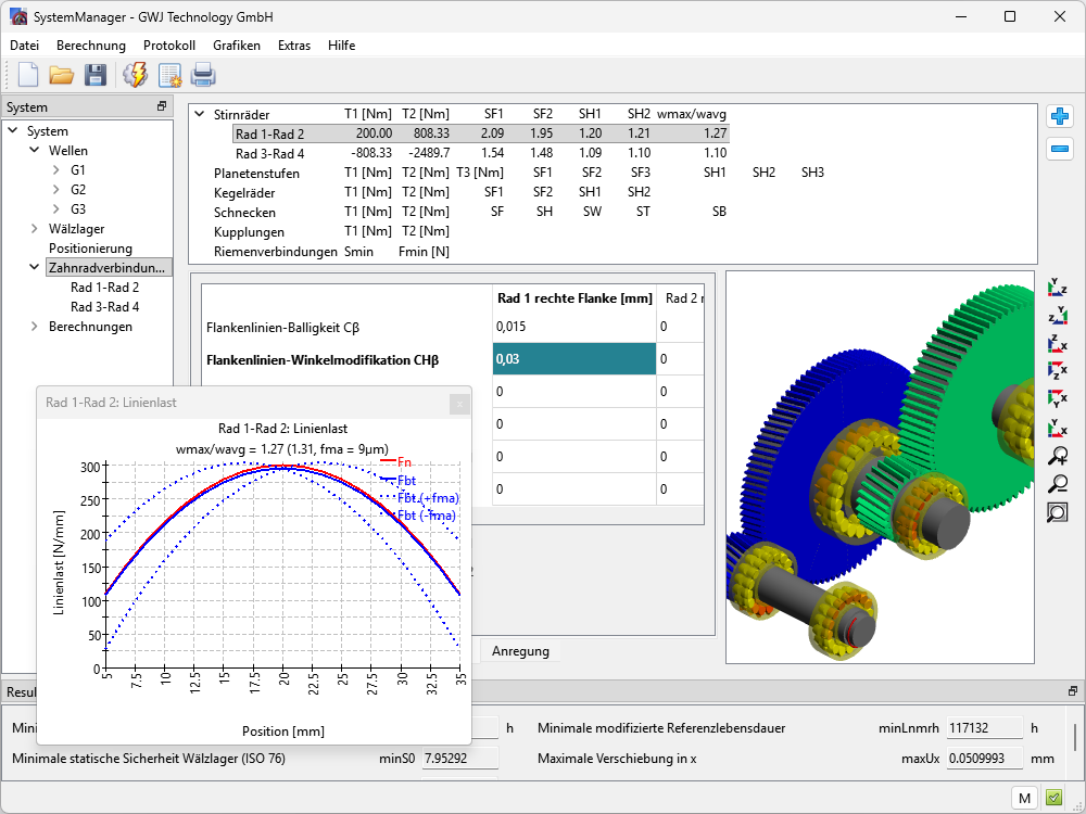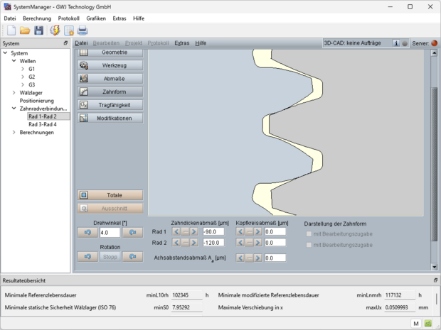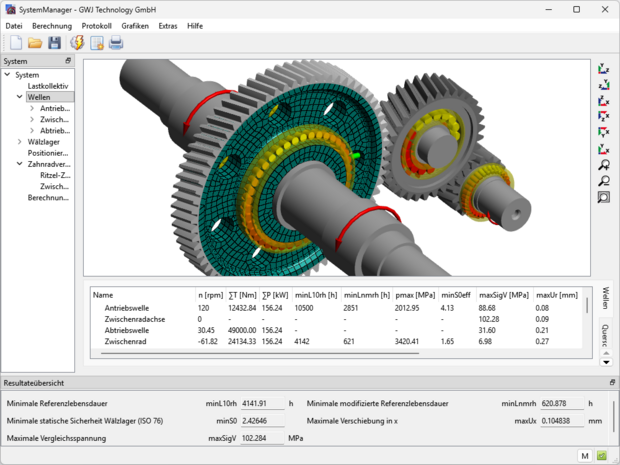 - Überblick über Verzahnungs- und Wellensicherheiten sowie Lagerlebensdauern direkt auf der Benutzeroberfläche