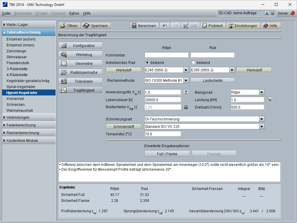 - Festigkeit nach ISO 10300 Methode B1
