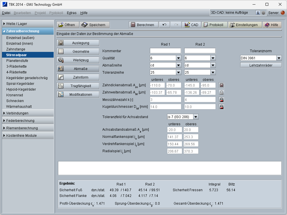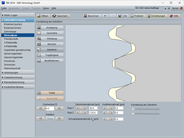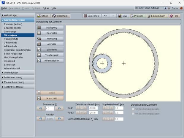- Zahndickentoleranzen und Achsabstandsabmaße aus Listboxen auswählbar oder individuell definierbar